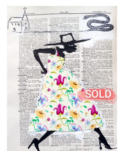 ► Created in 2024, collage, inks on antique dictionary page.Free Shipping. Price $85